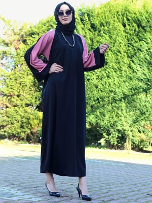 DUHA BY MELEK AYDIN Siyah Pudra Kolu Garnili Abiye Ferace