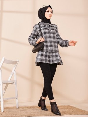 Tofisa Ekru Antrasit Ekoseli Tunik