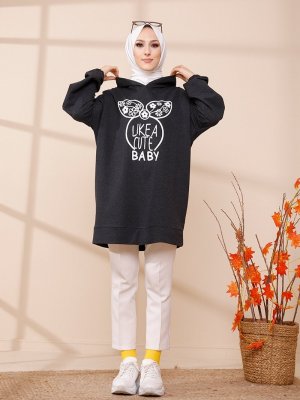 Tofisa Antrasit Kapüşonlu Tunik