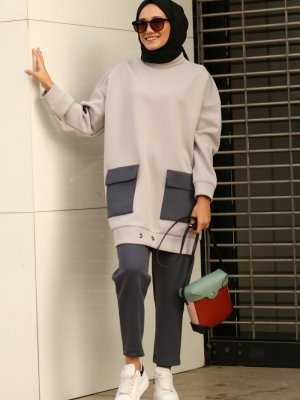 Gizce Gri Büyük Cep Detaylı Albea Takım