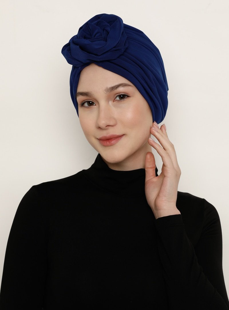 Vera Bone Saks Mavisi Düğüm Hazır Türban