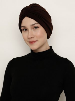 Vera Bone Kahverengi Tek Düğüm Hazır Türban