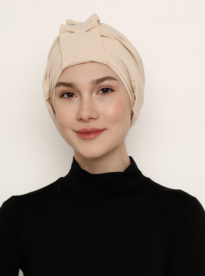 Vera Bone Bej Pratik Hazır Türban