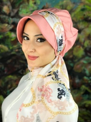 BUTİK AMBAR Somon Desenli Fularlı Tek Biritli Şapka