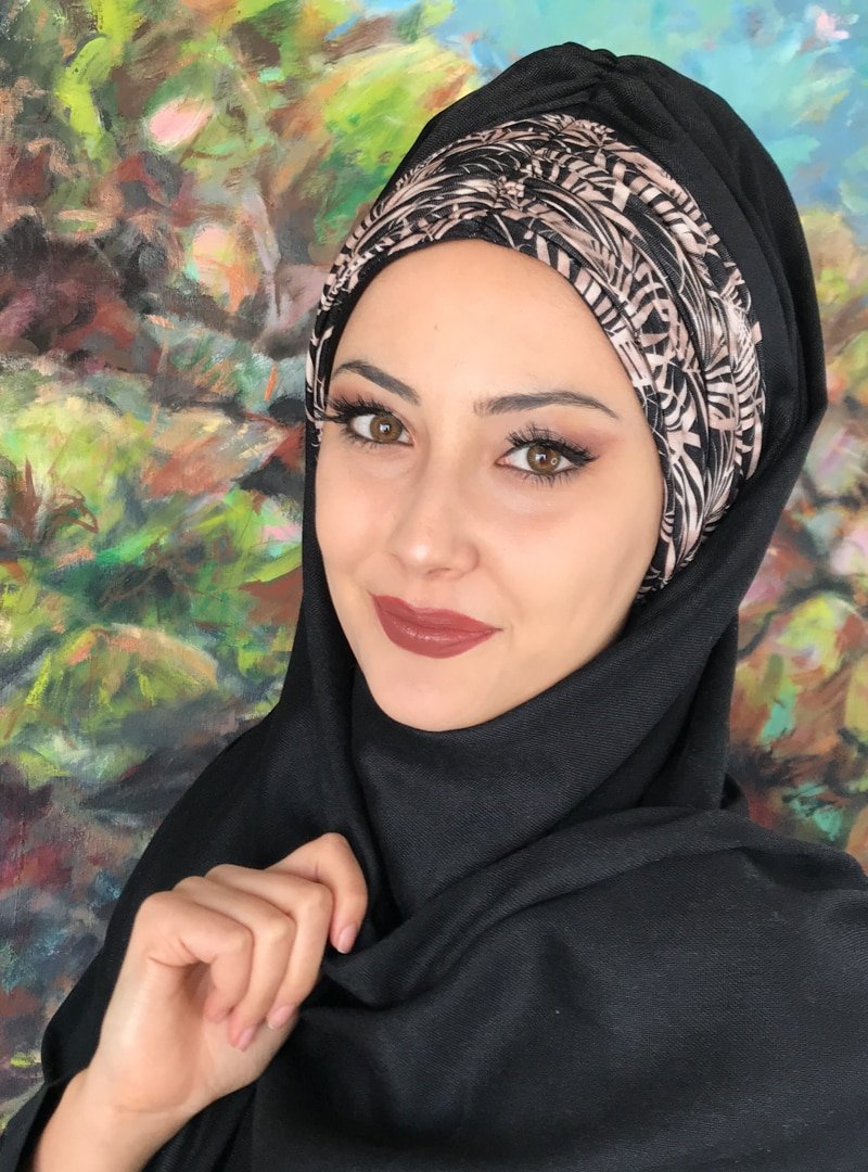 BUTİK AMBAR Siyah Büzgülü Desenli Hazır Şal