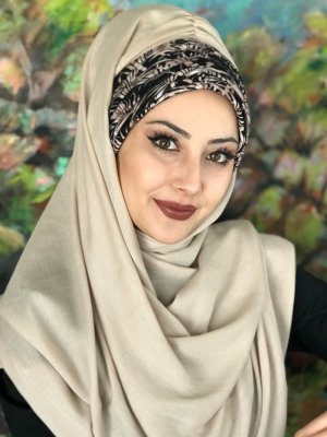 BUTİK AMBAR Bej Büzgülü Desenli Hazır Şal