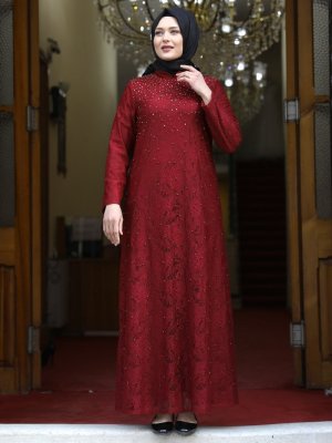 Amine Hüma Bordo Eda Abiye Elbise