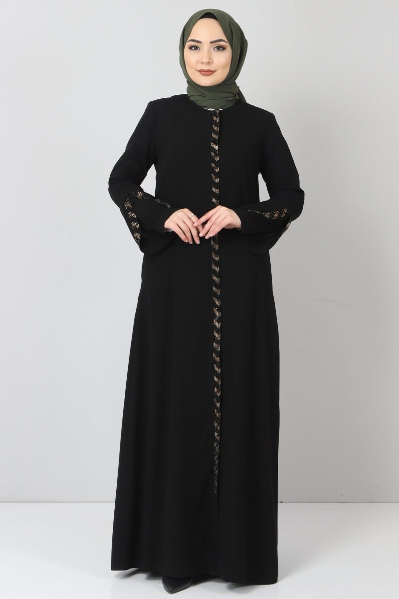 Tesettür Dünyası Siyah Büyük Beden Taş Detaylı Ferace