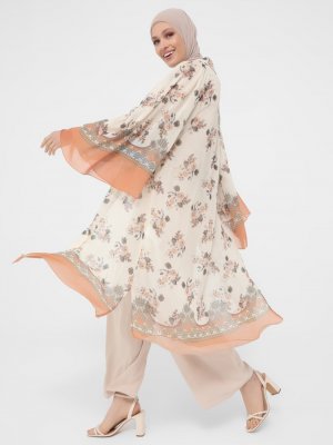 Refka Çiçekli Taba Kuşaklı Şifon Ferace