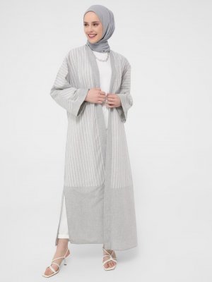 Refka Casual Gri Çizgili Garnili Oversize Pamuk Kap