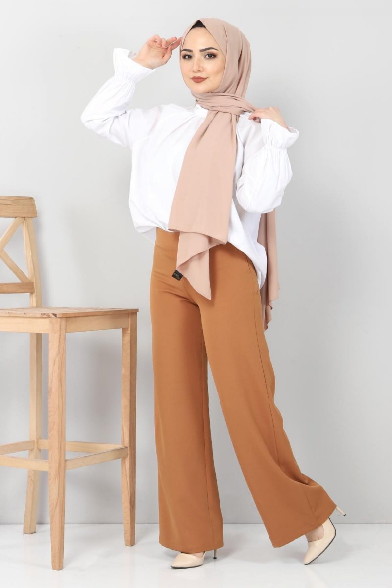 Tesettür Dünyası Taba Bol Paça Kumaş Pantolon