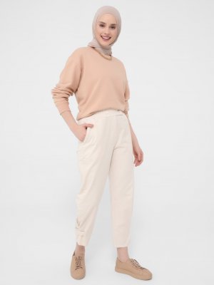 Refka Limon Ağacı Casual Beli Lastikli Paçası Çıtçıt Detaylı Rahat Pantolon