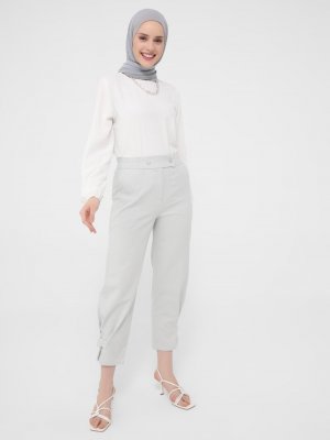 Refka Casual Açık Gri Beli Lastikli Paçası Çıtçıt Detaylı Rahat Pantolon