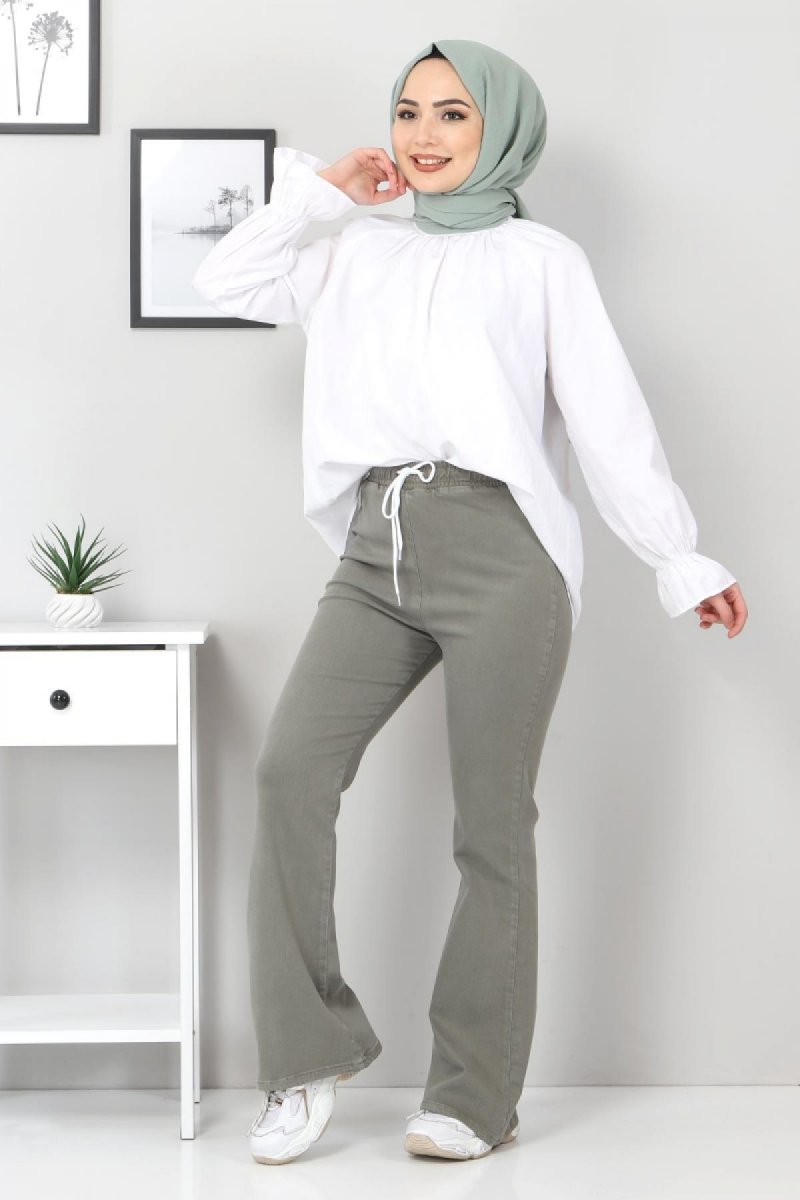 Tesettür Dünyası Haki İspanyol Paça Kot Pantolon