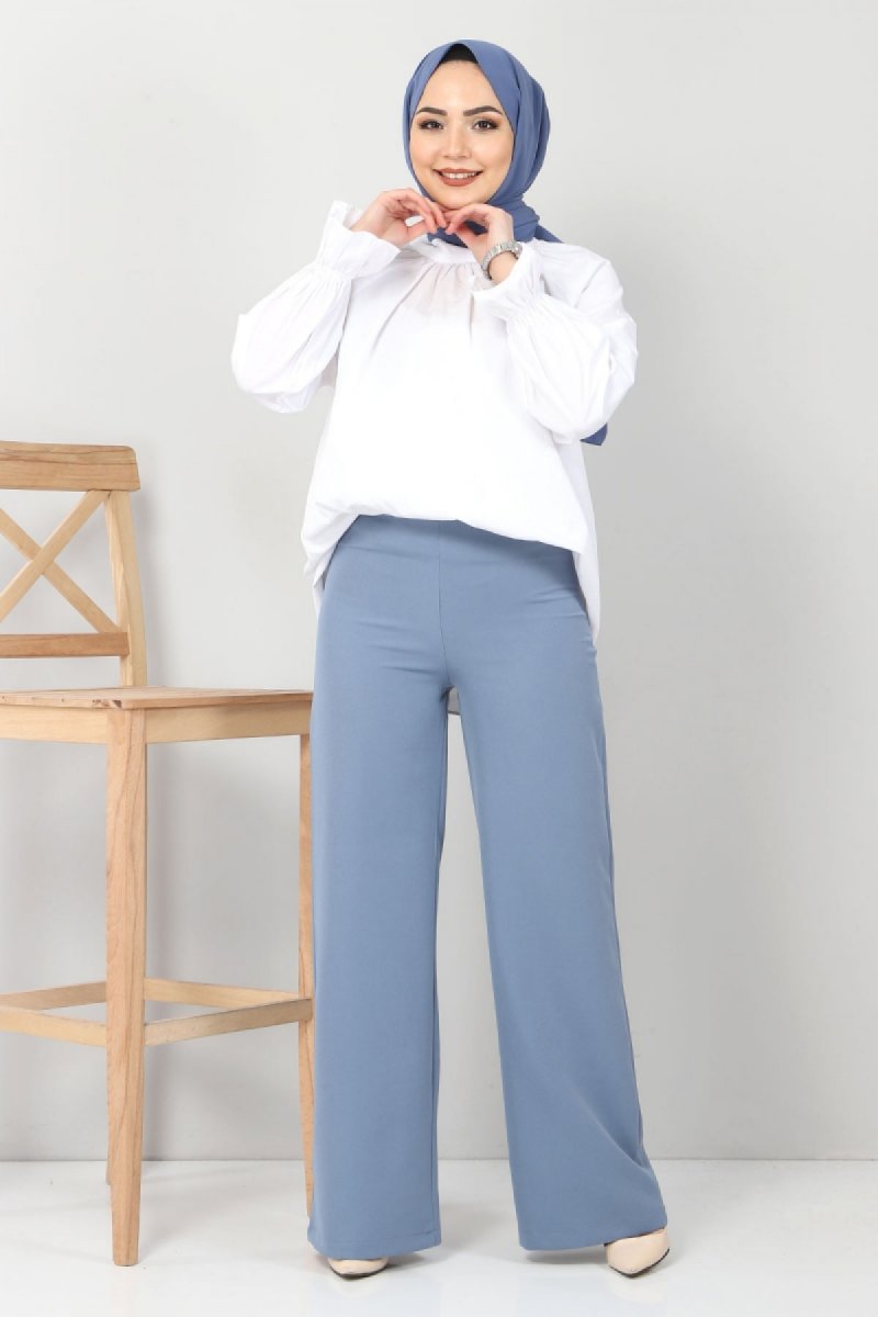 Tesettür Dünyası Mavi Bol Paça Kumaş Pantolon
