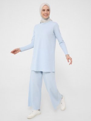 Refka Açık Mavi Yumuşak Dokulu Waffle Tunik & Pantolon İkili Ev Takımı