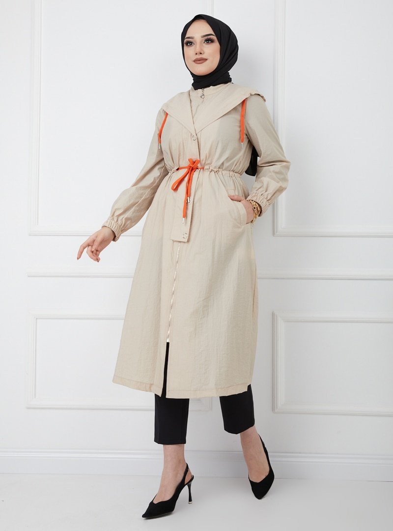 Concept By Olcay Bej Kapüşonlu Astarsız Paraşüt Kumaş Uzun Trençkot