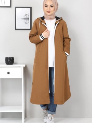 Tesettür Dünyası Kahverengi Ribanalı Trençkot