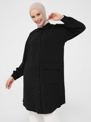 Refka Siyah Cep Detaylı Düğmeli Tunik