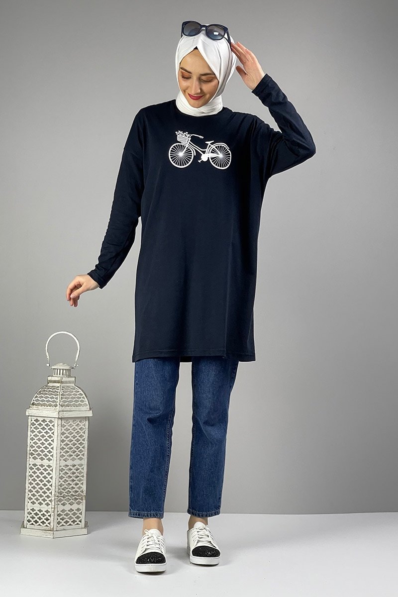 MODAPİNHAN Lacivert Salaş Baskılı Tunik