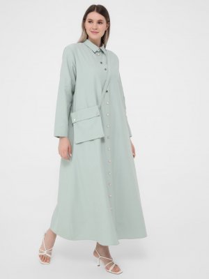 Alia Su Yeşili Büyük Beden Düğme Detaylı Çanta Aksesuarlı Fit Elbise