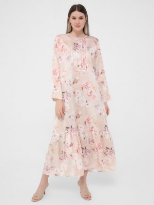 Alia Somon Büyük Beden Kolları Volanlı Çiçek Desenli Saten Elbise