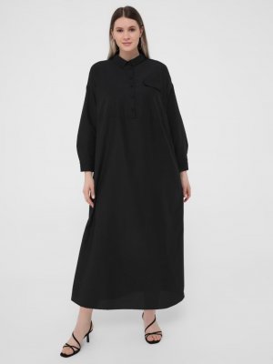 Alia Siyah Büyük Beden Cep Detaylı Elbise