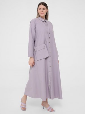 Alia Lila Büyük Beden Düğme Detaylı Çanta Aksesuarlı Fit Elbise