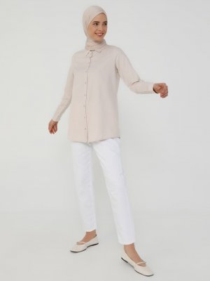 Refka Vanilya Oxford Kumaştan Basic Gömlek
