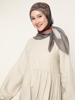 Gülsoy Gümüş 110cm Dikişli Yazma Eşarp