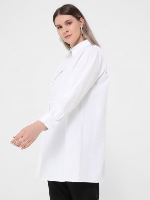 Alia Beyaz Büyük Beden Pamuklu Gizli Düğmeli Tunik