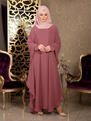 İz Otantik Pembe Şifon Yarasa Ferace