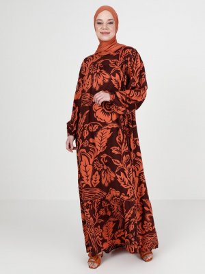 Arıkan Kiremit Çiçek Desenli Elbise