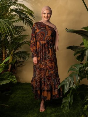 BÜRÜN Taba Desenli Elbise