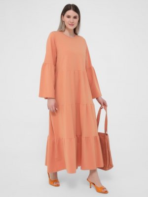 Alia Şeftali Büyük Beden Rahat Parçalı Örme Elbise