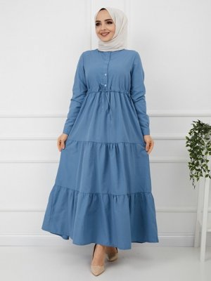 SAHRA BUTİK İndigo Fırfırlı Elbise