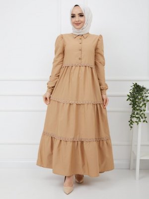 SAHRA BUTİK Bisküvit Dantelli Elbise