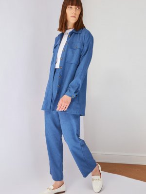Trendyol Modest İndigo Gömlek Yaka Alt Üst Takım