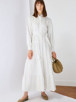 Trendyol Modest Ekru Puantiyeli Kumaş Elbise