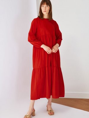 Trendyol Modest Turuncu Kiremit Poplin Elbise