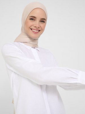 Refka Beyaz Gizli Düğmeli Tunik