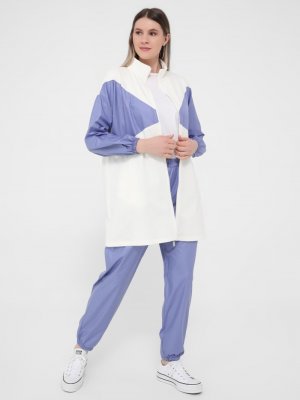 Alia Lila Ekru Büyük Beden Boydan Fermuları Garnili Kap