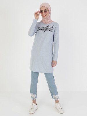 Bwest Açık Mavi Baskılı Tunik