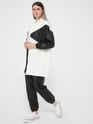 Alia Ekru Siyah Büyük Beden Boydan Fermuları Garnili Kap