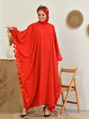 Filizzade Kırmızı Tül Detaylı Salaş Ferace