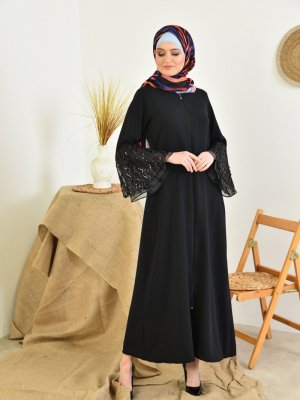 Filizzade Siyah Kollar Aksesuar Organize ve Volan Detaylı Ferace