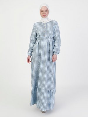 ZENANE Bebe Mavisi Kareli Elbise