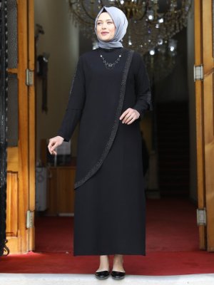 Amine Hüma Siyah Hünkar Abiye Elbise