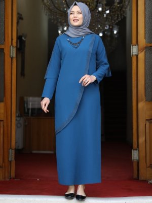 Amine Hüma İndigo Hünkar Abiye Elbise