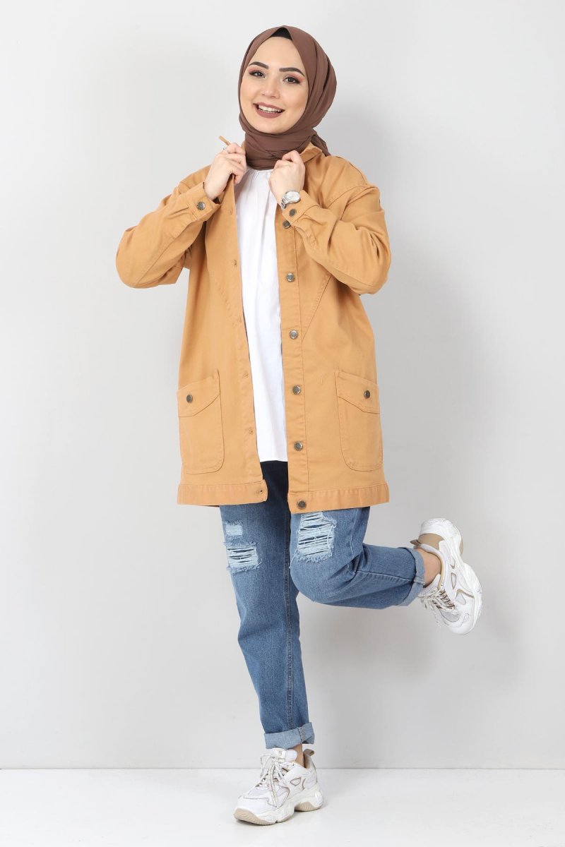 Tesettür Dünyası Taba Cepli Kot Ceket